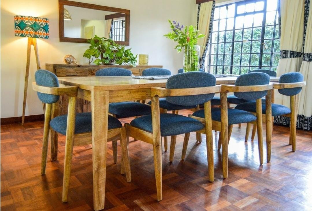 The Stawi Dining Chair is a super minimalist chair that creates a spacious uncluttered look. It works well in small spaces but can equally work when paired with a standout dining table as it adds character to such a table without taking away from it. The frame is made from hardwood while the backrest and seat are made from high quality veneer boards.